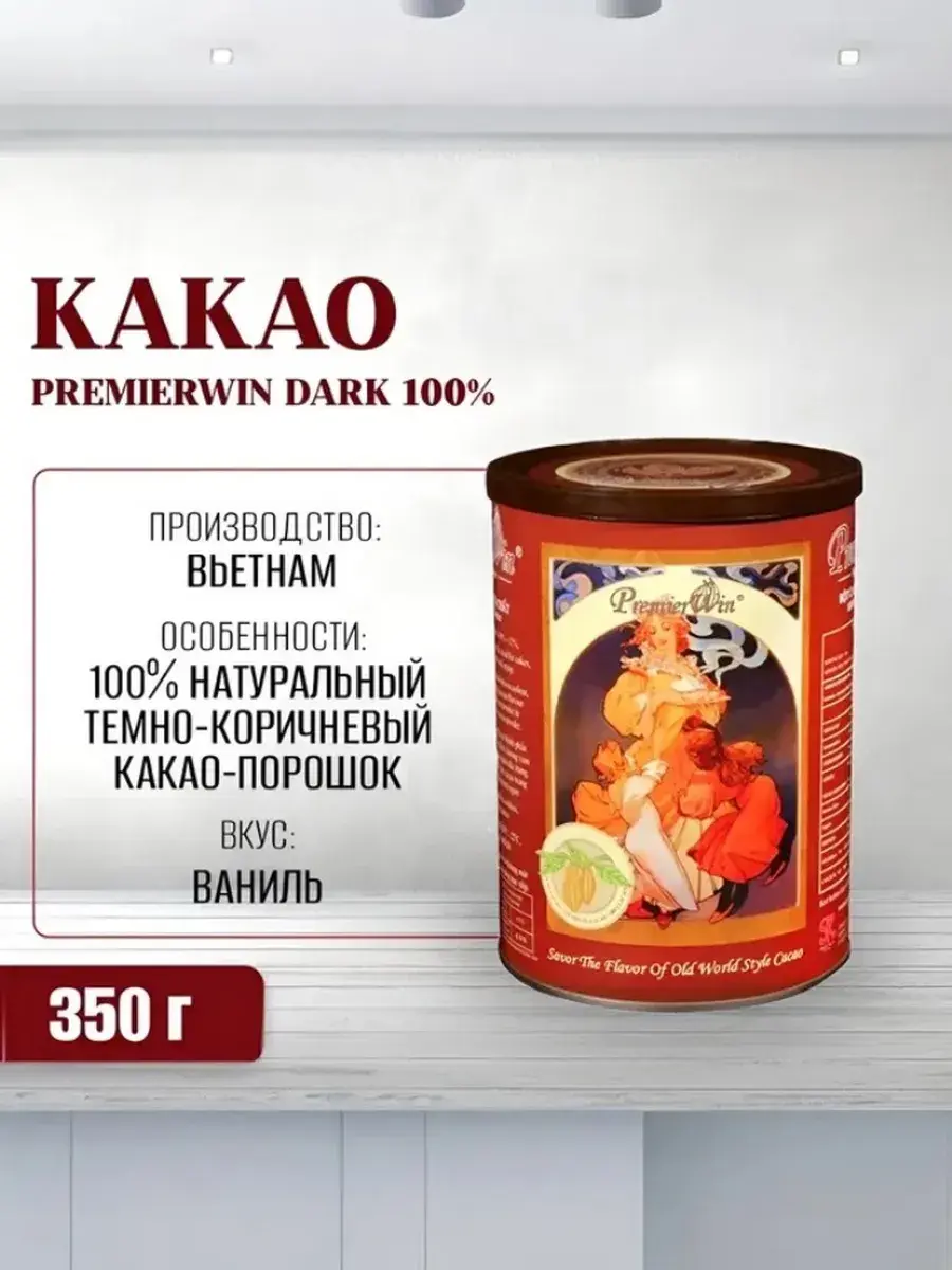 Вьетнамское КАКАО (порошок) PremierWin "Dark 100%" - вьетнамское какао "PremierWin" имеет насыщенный шоколадный вкус и аромат. Используется для приготовления горячих и холодных напитков, а также для изготовления десертов и тортов.