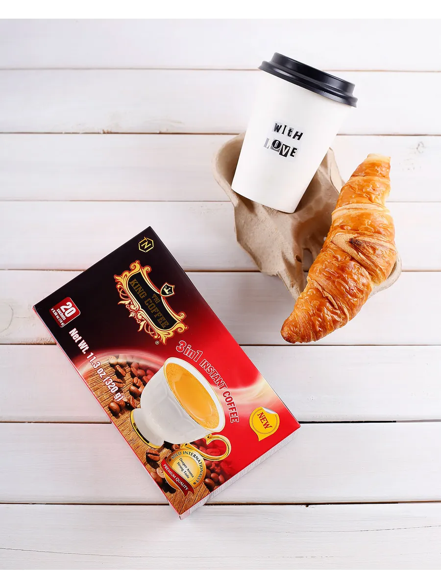Представляем вашему вниманию уникальный продукт — Кофе растворимый 3 в 1 King coffee instant, который станет настоящим открытием для любителей качественного и удобного кофе.