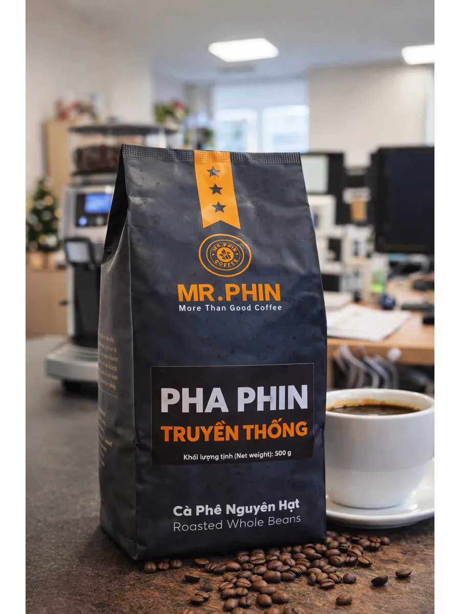 Кофе зерновой Mr.Phin — это сбалансированный и выразительный вьетнамский бленд для ежедневного удовольствия и бодрого начала дня. В составе 80% робусты и 20% арабики — идеальное сочетание крепости, плотности вкуса и мягкой ароматной глубины. Робуста дарит насыщенность и яркий тонизирующий эффект, а арабика добавляет округлость, лёгкость и приятную кислинку.