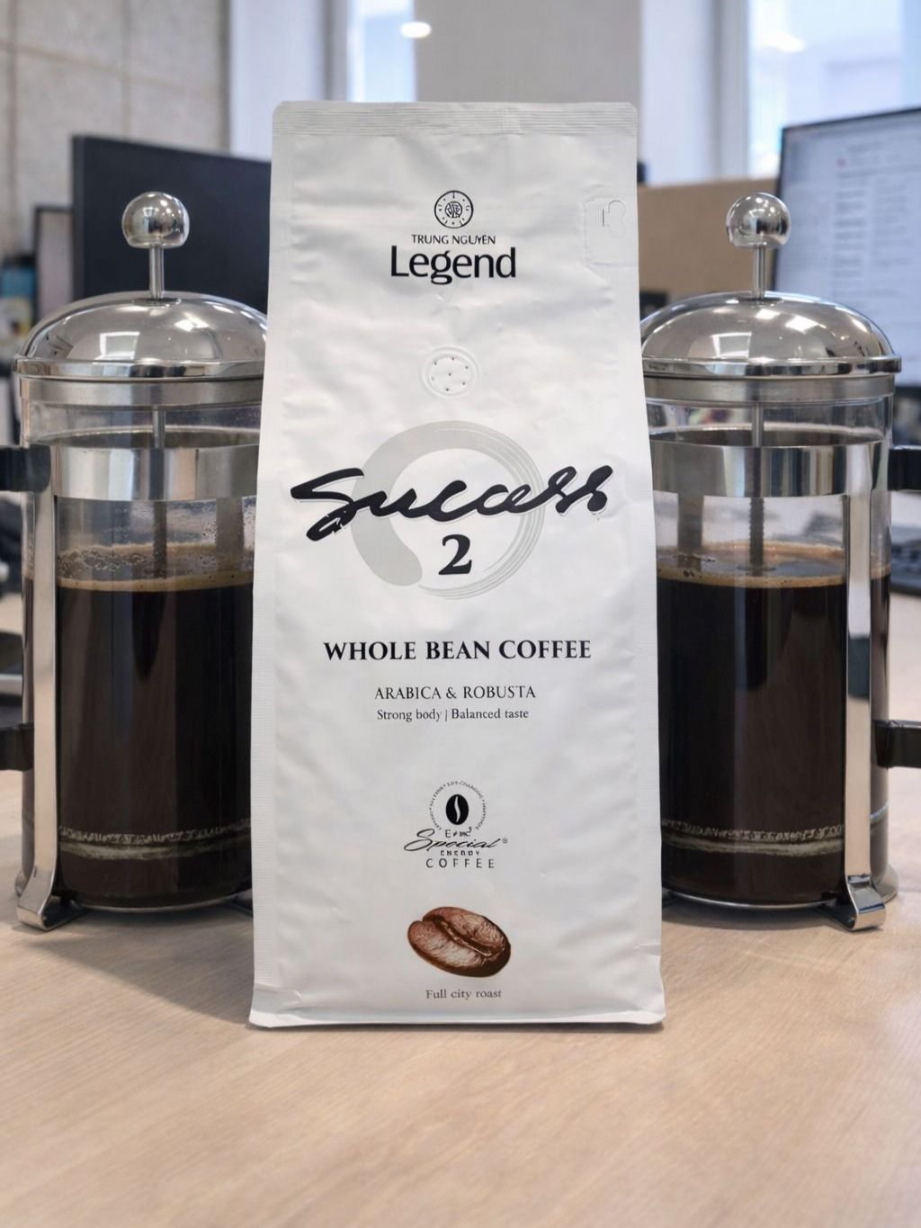 Trung Nguyen - Legend - Success №2. Вес нетто: 1000 грамм. Состав арабика-робуста 85 на 15. Синтез двух сортов, а также правильный профиль обжара придают кофейному бленду "Успех №2" идеально выверенный баланс вкуса. Арабику любят за сильный приятный аромат, меньшую горечь, характерную кислотность и низкое содержание кофеина. Робуста в купаже отвечает за более насыщенный вкус и традиционную сильную горечь.